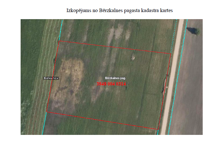 Balvu novada pašvaldība izsludina atklātā mutiskā izsolē ar augšupejošu soli nomas tiesības uz zemes vienību Bērzkalnes pagastā, Balvu novadā, ar kadastra apzīmējumu 3848 004 0314, 1,1403 ha platībā. Zemes lietošanas mērķis – zeme uz kuras galvenā saimnieciskā darbība ir lauksaimniecība (0101).