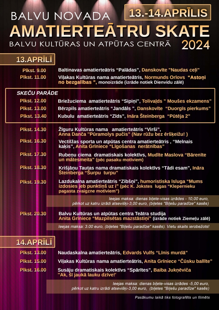 13. un 14. aprīlī ikviens interesents tiek aicināts uz Balvu novada amatierteātru skati, kurā būs iespējams vērot amatierteātru 11 izrādes un 3 skečus.
