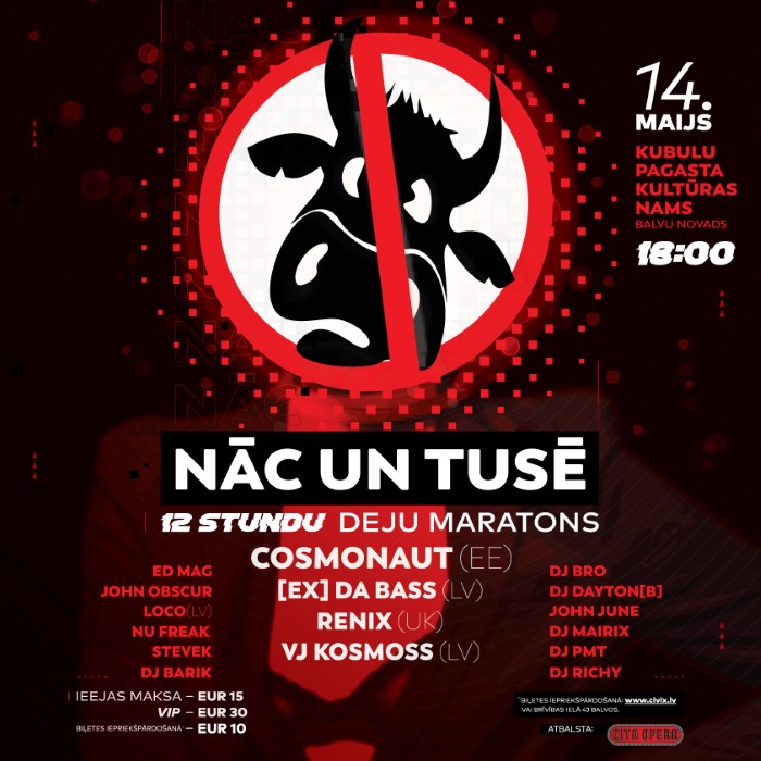 14 maijā. Kubulu kultūras namā norisināsies skaļākais Latvijas elektroniskās mūzikas 12 stundu deju maratons. Piedalās DJ no Latvijas, Igaunijas un Anglijas, kuri gatavi padarīt vakaru neaizmirstamu.