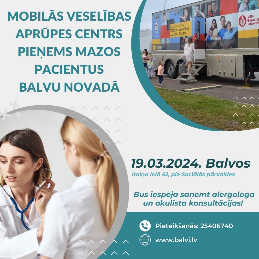 Kā katru gadu, pat vairākas reizes gadā, Balvus atkal apmeklēs "Mobilais busiņš", jeb Mobilais veselības aprūpes centrs bērniem, kurā tiks nodrošinātas alergologa un okulista konsultācijas.