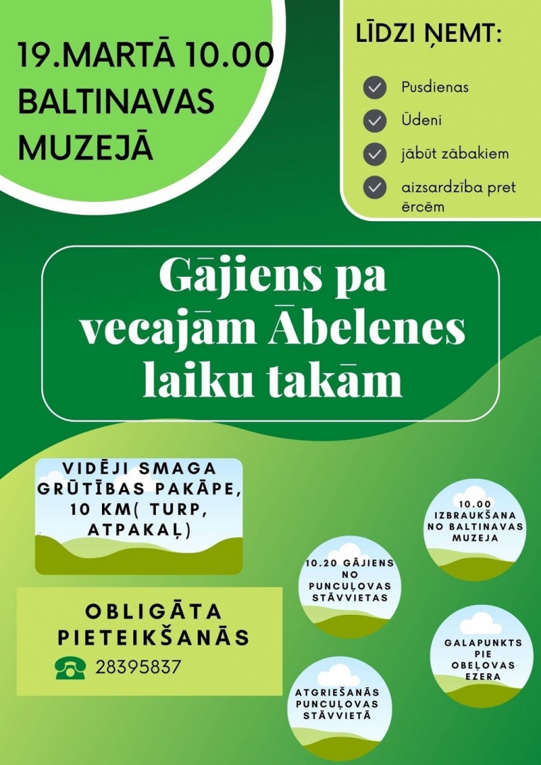Baltinavas muzejs 19. martā rīko pārgājienu “Gājiens pa vecajām Ābelenes laiku takām”. Tā maršruts ļaus izjust senatnes auru un iztēlē atdzīvināt teikās, leģendās kā arī atmiņās saglabātos stāstus par pilskalniem.