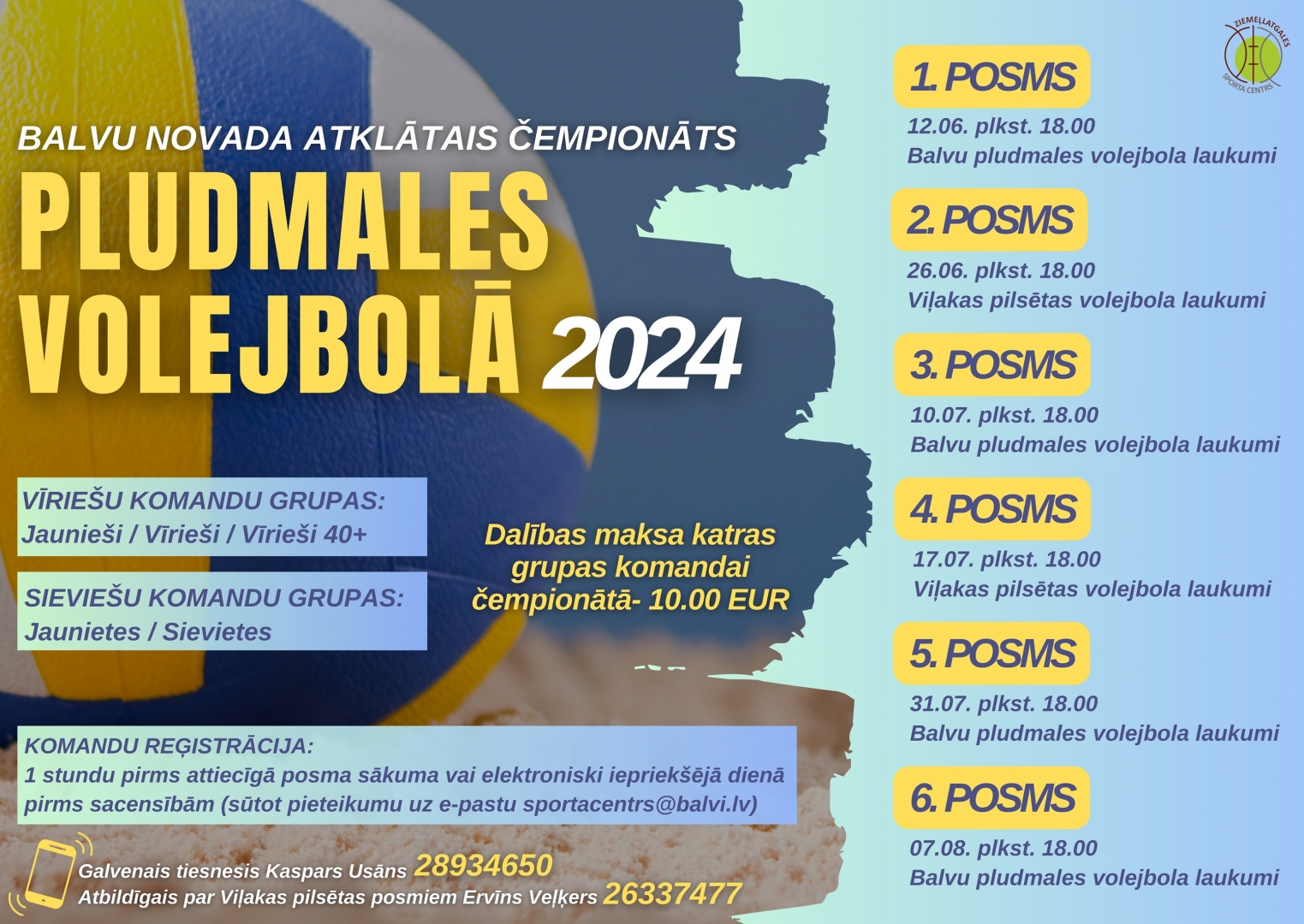 - 1.posms – 12. jūnijs plkst.18.00, Balvu pludmales volejbola laukumi.