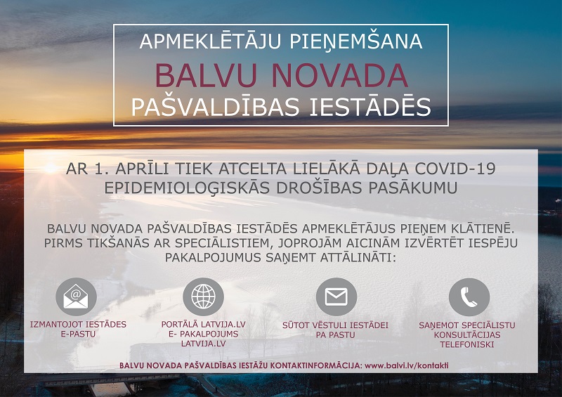 Apmeklētāju pieņemšana Balvu novada pašvaldības iestādēs no 1.aprīļa