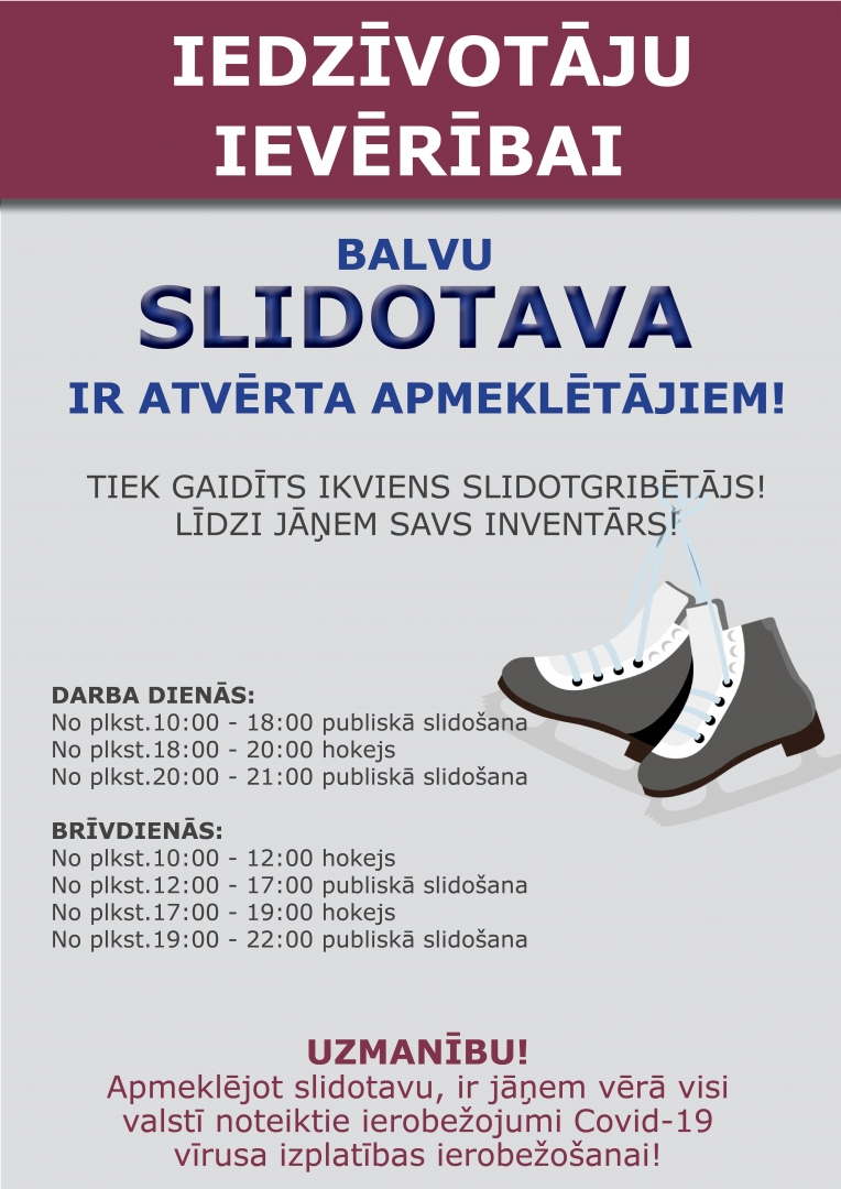 Ar 10. februāri atvērta Balvu slidotava