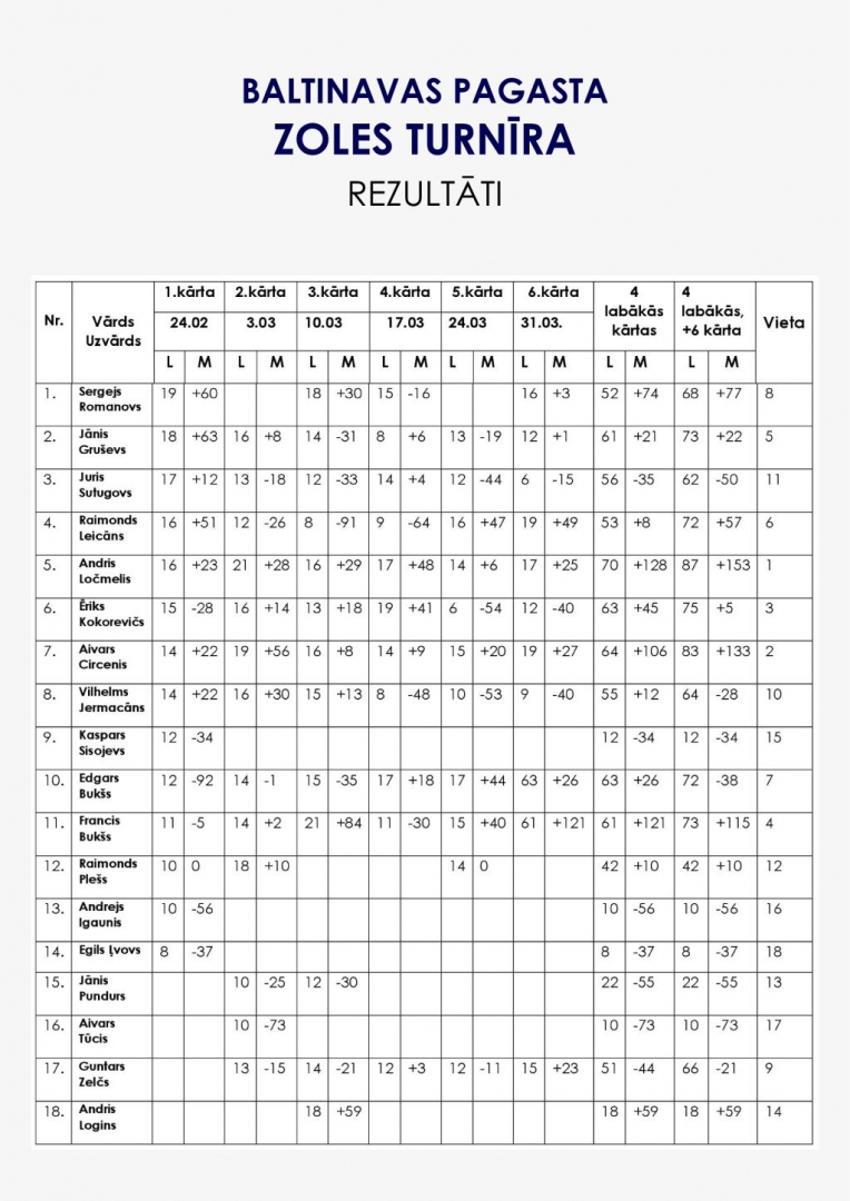 31. martā noslēdzās Baltinavas pagasta Zoles turnīrs.