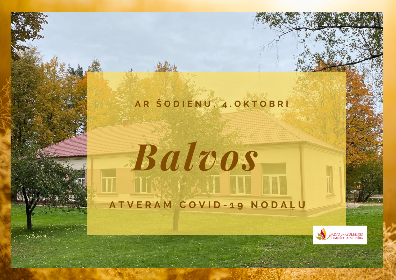 Strauji pieaugot Covid-19 vīrusinfekcijas hospitalizēto (stacionēto) pacientu skaitam slimnīcās, Balvu un Gulbenes slimnīcu apvienība slimnieku ārstēšanai ar šodienu, 4.oktobri atver Covid-19 nodaļu Balvos ar 14 gultasvietām. Lai gan vēl joprojām slimnīcu apvienības ieguldījumi, atverot Covid-19 nodaļas 2020.gada decembrī, no valsts puses nav samaksāti, pēc Veselības ministrijas uzstādījuma ir pieņemts lēmums vienu Covid-19 nodaļu atvērt.