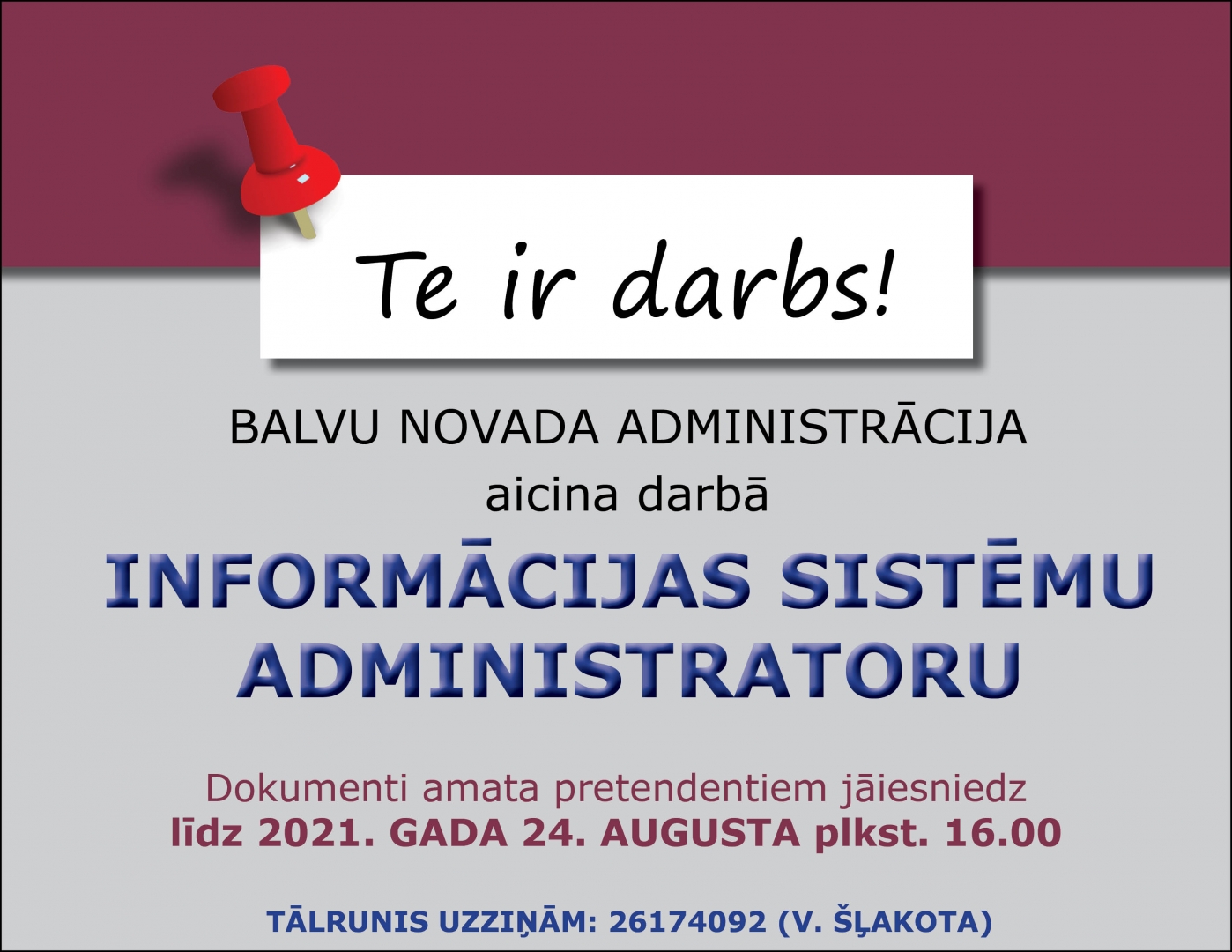 aicina darbā Informācijas sistēmu administratoru (profesijas kods 2522 03)
