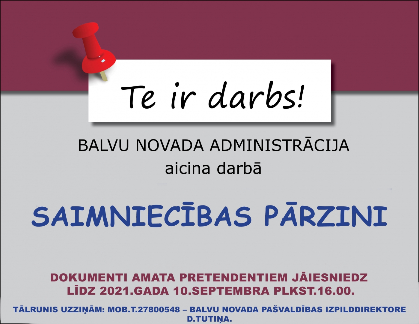 Tālrunis uzziņām Mob.T. +371 27800548 – Balvu novada pašvaldības izpilddirektore D.Tutiņa.