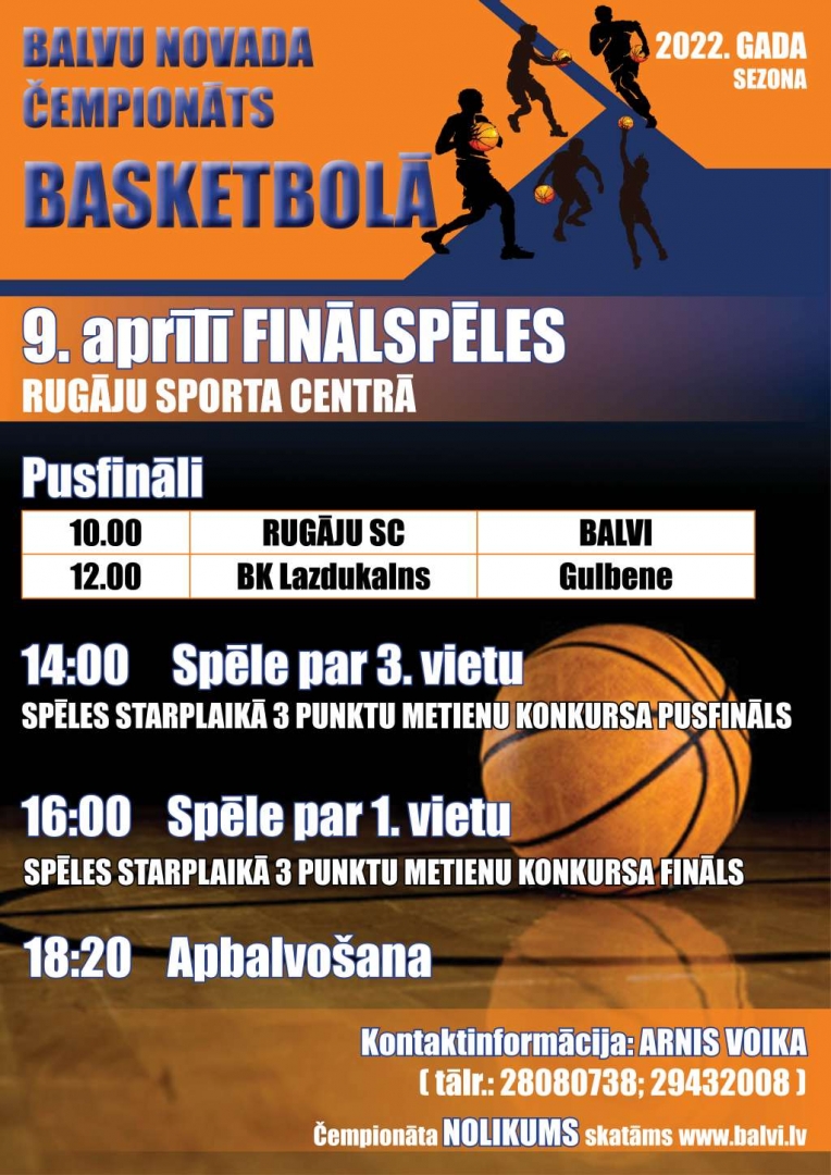 9. aprīlī notiks Balvu novada čempionāta basketbolā, 2022. gada sezonā, finālspēles Rugāju sporta centrā.