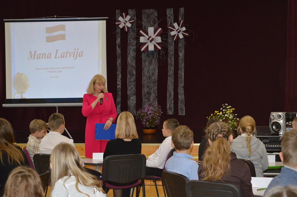 Erudīcijas viktorīnas „Mana Latvija” mērķis bija piedāvāt skolēniem iespēju apliecināt savas zināšanas par Latviju, pilnveidojot pilsoniskās līdzdalības, kritiskās domāšanas un sadarbības prasmes. Skolēni atbildēja uz dažādiem jautājumiem par Latviju, piemēram, kādi novadi 2021. gada administratīvi teritoriālās reformas gaitā tika apvienoti Balvu novadā? Kas ir asuškas jeb kļockas, krapavnīki un kugelis? Kā sauc fotogrāfu, kura fotogrāfijā uzņemts Latvijas valsts pasludināšanas brīdis, kas ir vienīgā notikuma vizuālā liecība? Cik deputātu veido Latvijas Republikas parlamentu?