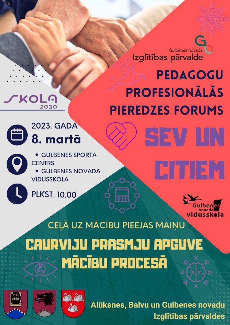 2023. gada 8. martā plkst.10.00 Gulbenes novada vidusskolā norisināsies pedagogu profesionālās pieredzes forums.