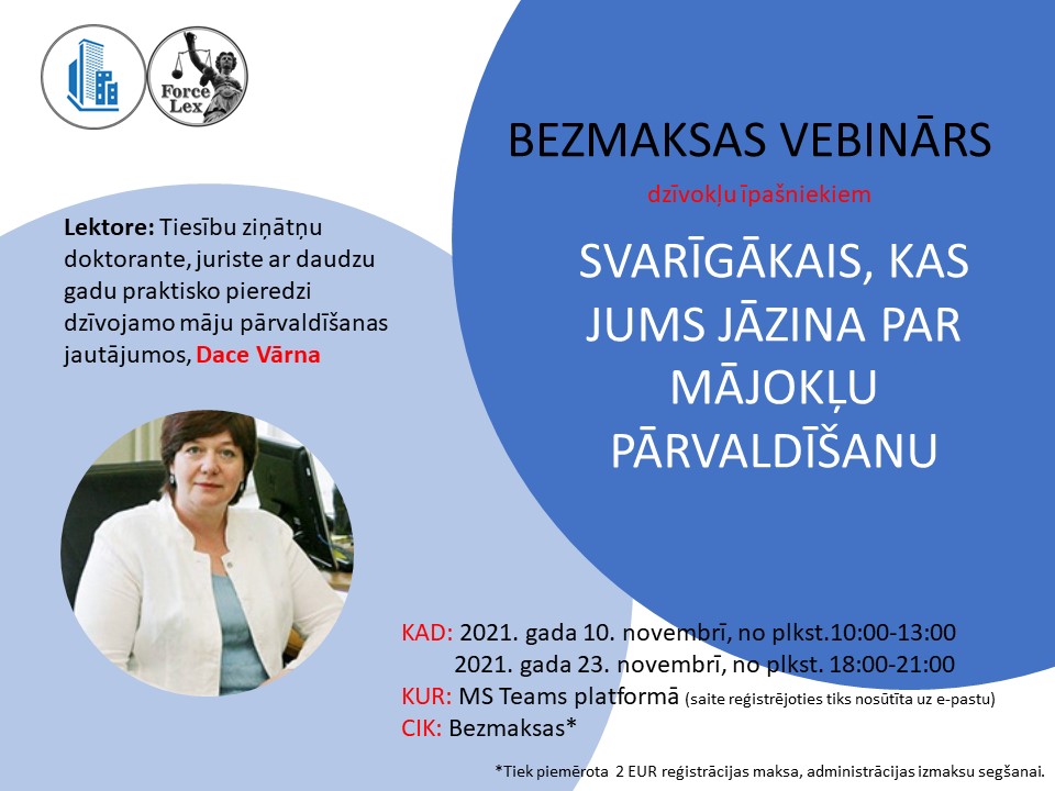 Iespēja piedalīties bezmaksas vebinārā par mājokļa apsaimniekošanu!