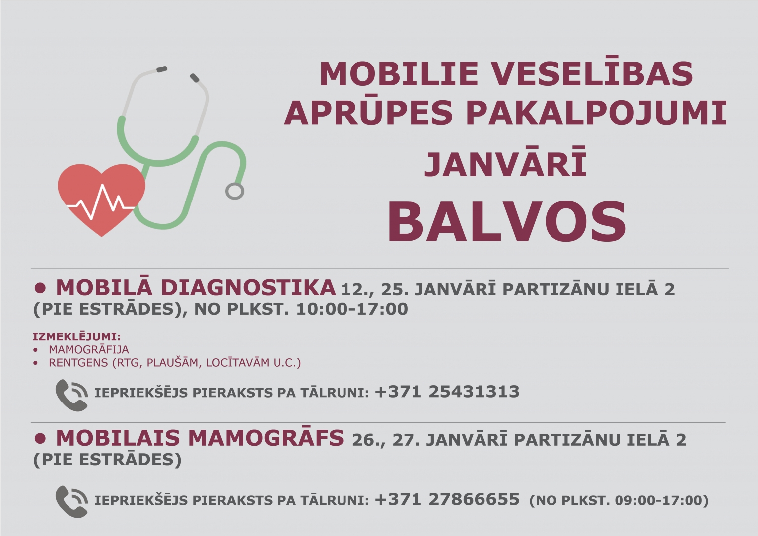 Janvārī Balvos pieejami mobilie veselības aprūpes pakalpojumi