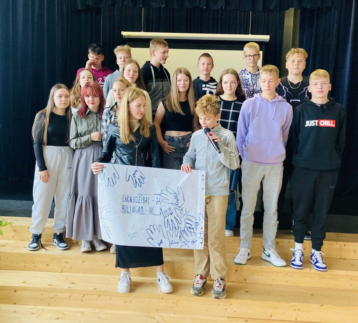 Balvu Valsts ģimnāzija ir to 60 Latvijas skolu vidū, kas ir pieteikusies šai programmai, lai aktualizētu sabiedrībā strauji pieaugošo bulinga problēmu, mācītu skolēniem to atpazīt un prast atbilstoši rīkoties. 3. oktobrī 7.-9. klašu skolēni pulcējās skolas aktu zālē, lai uzzinātu par šo programmu un simboliski parakstītos par 365 dienām bez pāridarījumiem, atstājot uz klases plakāta krāsainu plaukstas nospiedumu un kopā ar klasesbiedriem izdomājot antibulinga saukli. Klašu telpās atradīsies plakāts ar skolēnu simboliskajiem parakstiem, kas atgādinās, ka katrs skolēns ir apņēmies nepieļaut emocionālu un fizisku vardarbību.