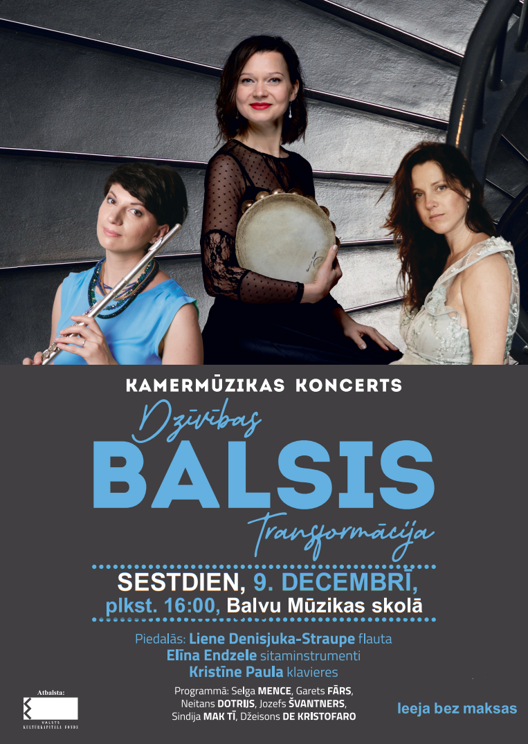 Koncertā priecēs flautiste Liene Denisjuka-Straupe, sitaminstrumentāliste Elīna Endzele un pianiste Kristīne Paula.