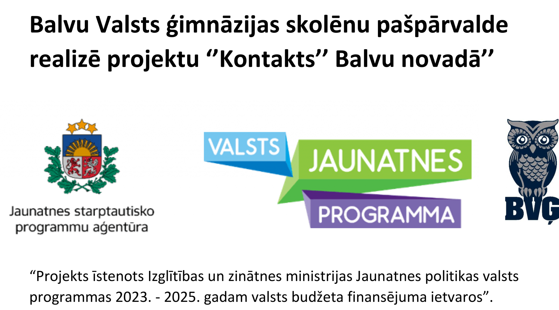 “Projekts īstenots Izglītības un zinātnes ministrijas Jaunatnes politikas valsts programmas 2023. - 2025. gadam valsts budžeta finansējuma ietvaros”.