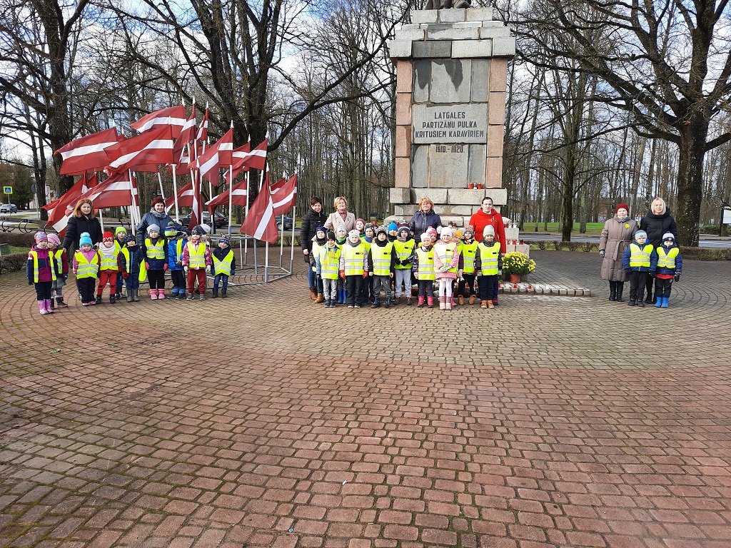 Lāčplēša dienu atzīmējot, tika izgaismoti iestādes galvenie celiņi. 3 posma izglītojamie apmeklēja tēlnieka Kārļa Jansona veidoto pieminekli 1919.-1920. gada Latgales pulka partizāniem "Sargājošais partizāns", tautā pazīstamu ar nosaukumu "Latgales Staņislavs". Pieminot cīnītājus, tika nolikti ziedi un iedegtas svecītes.