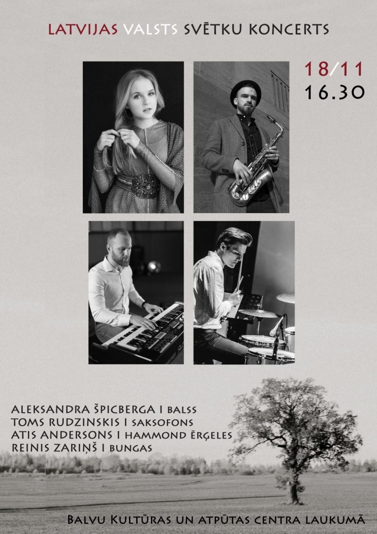 18. novembrī plkst. 16.30 Balvu Kultūras un atpūtas centra laukumā notiks Latvijas valsts svētku koncerts.