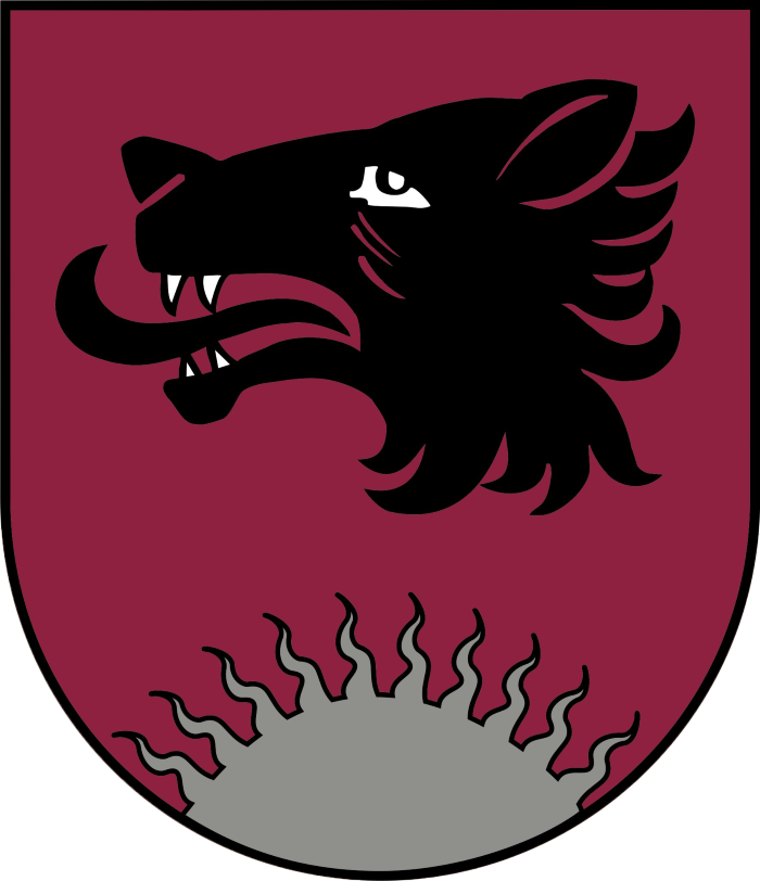 Deputāti lēma virzīt Balvu novada ģerboni - Melna vilka galva un austoša sudraba saule purpura sarkanā fonā (pievienotajā attēlā) atjaunošanai un reģistrēšanai Ģerboņu reģistrā.