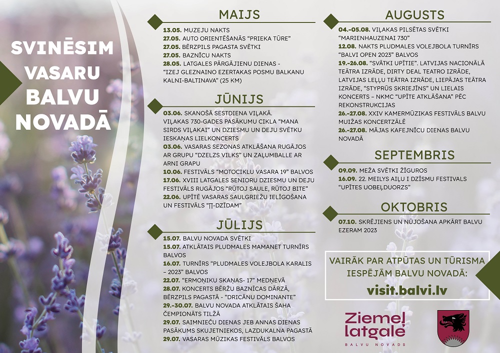 Svinēsim vasaru Balvu novadā! Aicinām iepazīties ar lielākajiem plānotajiem pasākumiem Balvu novadā 2023. gadā vasaras sezonā.