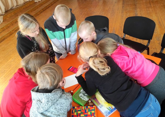 19. aprīlī pēc 4. mācību stundas 1.-6. klases skolēni pulcējās skolas aktu zālē uz Lieldienu pasākumu. To vadīja 7. klases skolēni. Viņi bija ļoti centušies, jo bija padomāts par visu. Sākumā visi dalībnieki tika sadalīti komandās pa krāsām. Katrai komandai vajadzēja izdomāt nosaukumu.
