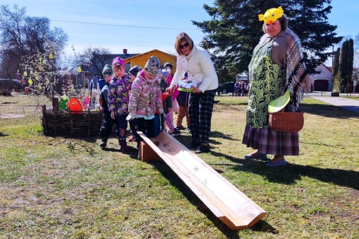 Mazie pīlādzēni tikās ar vistiņu, gailīti un Sprīdīti kopīgās Lieldienu lustēs. Bērniem bija iespēja sacensties olu ripināšanā, izšūpoties, izkustēties jautrā dancī un līdzdarboties veiklības stafetēs.