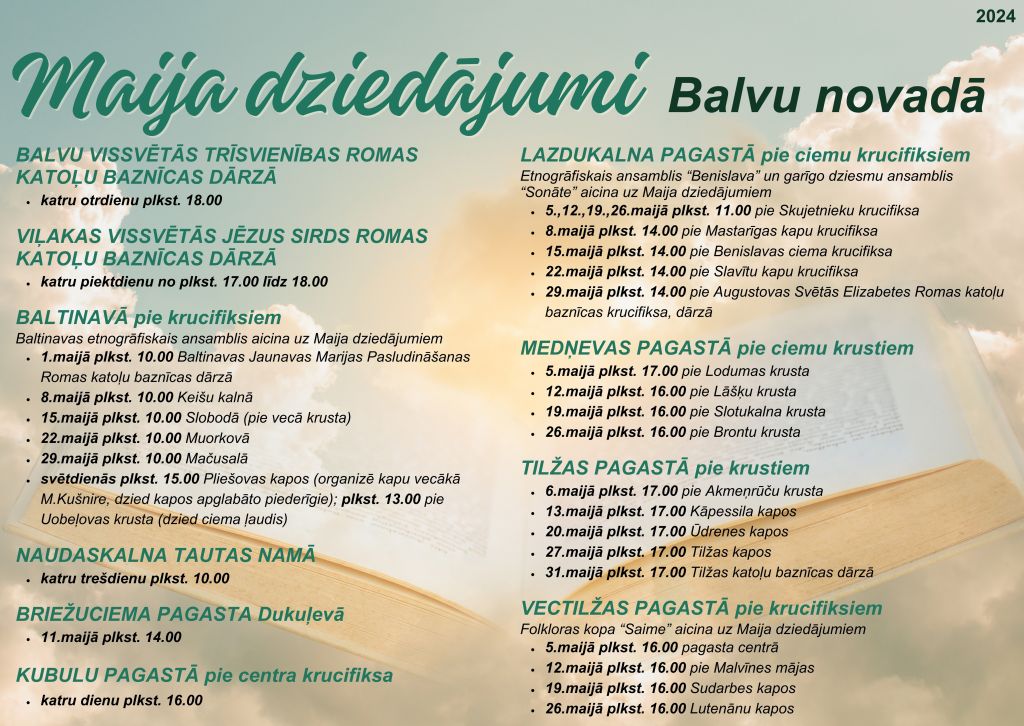 - 5.,12.,19., 26. maijā plkst. 11.00 pie Skujetnieku krucifiksa