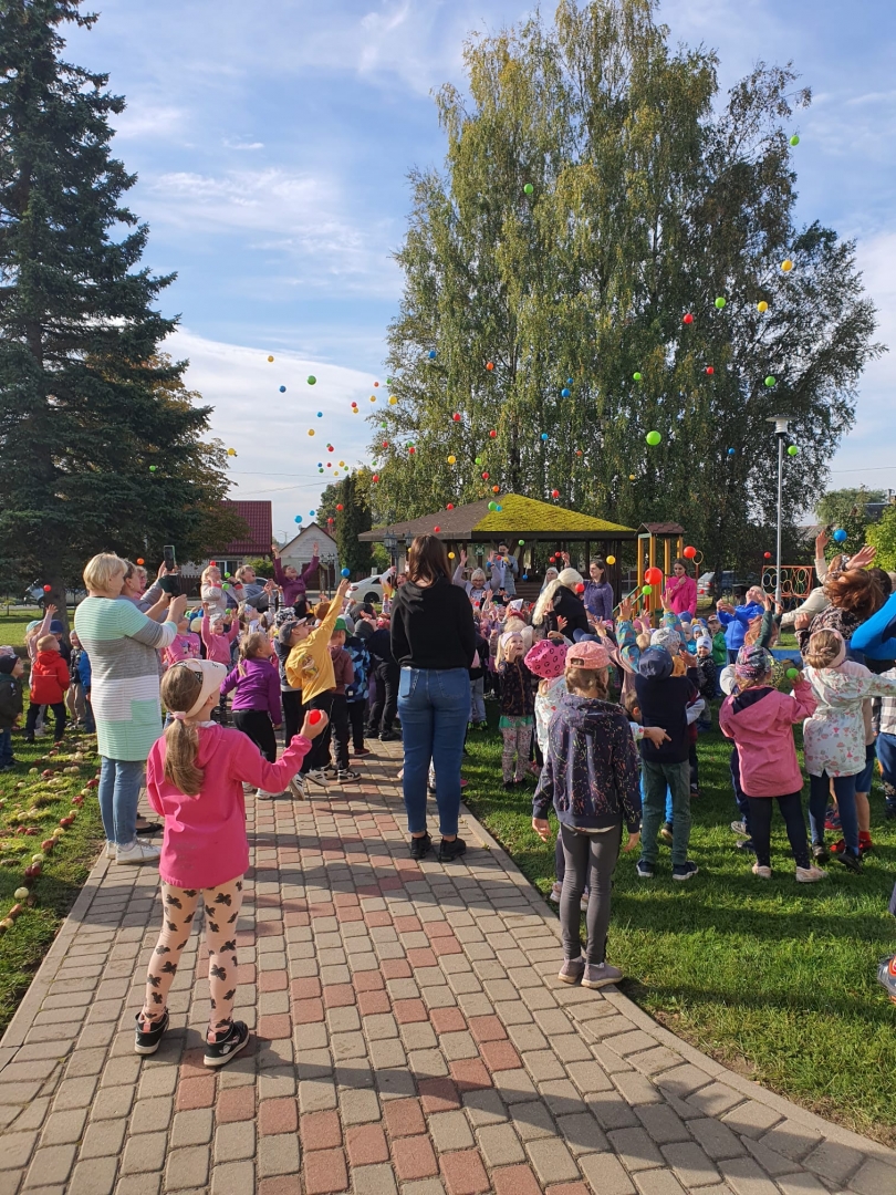 28.septembra rītā vecāki, bērni, kā arī iestādes darbinieki, devās uz dārziņu ar rudens ziediem, dārza veltēm un mežā lasītiem čiekuriem, kastaņiem. Visas dienas cēlienā ap iestādi tapa skaistas rudenīgas mandalas dzīvnieku, kukaiņu, ziedu noformējumā. No rudens veltēm tika veidotas ornamentālas, ritmiskas rindas, kuras bērni līdz pat salnām varēs izmantot āra vides nodarbībās.