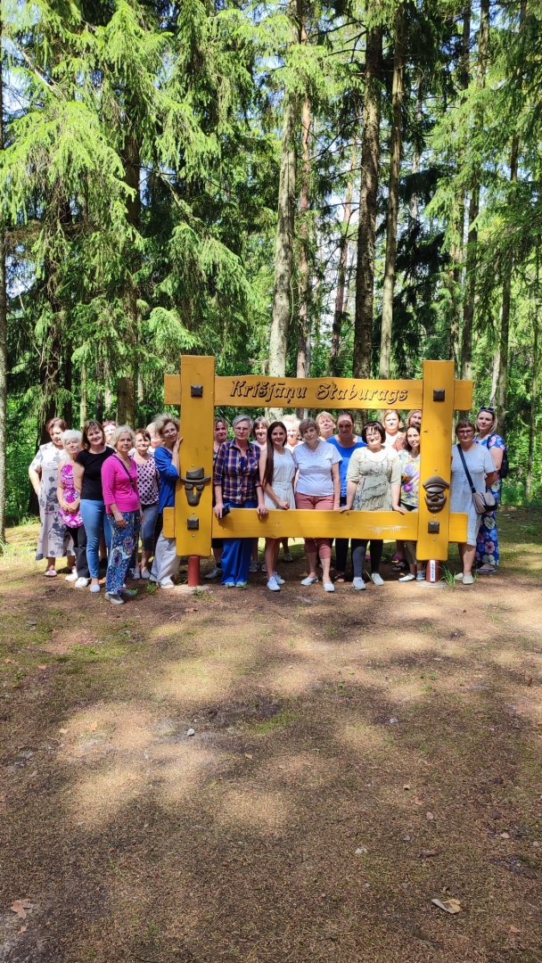Pēdējais pieturas punkts bija Krišjāņu bibliotēka, kur tās vadītāja Daiga Zelča visus veda ekspedīcijā pa Krišjāņiem. Pildot dažādus uzdevumus, tika izzināta pagasta vēsture, dziedātas dziesmas, sacerēti dzejoļi un baudīta daba.