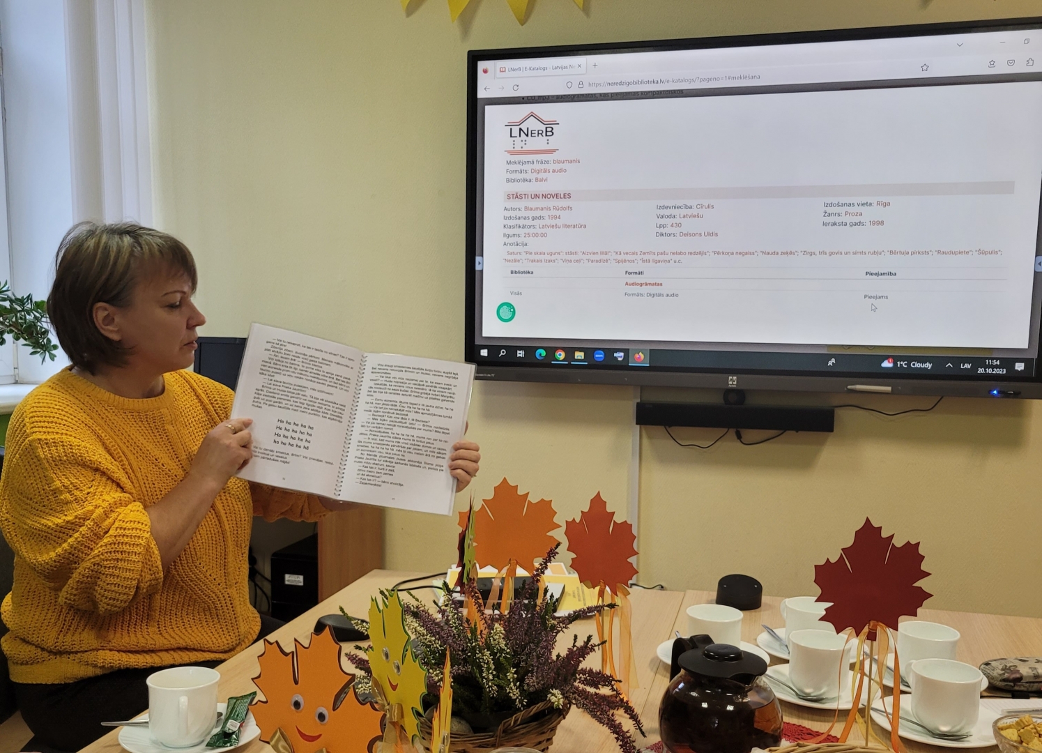 Pielāgotās literatūras bibliotēkas vadītāja Ilona Laicāne sniedza informāciju par dažāda veida pielāgoto literatūru: audiogrāmatām, grāmatām palielinātā drukā, Braila rakstā, savukārt informācijas pakalpojumu puncta un radošās lasītavas vecākā bibliotekāre Evita Arule iepazīstināja ar medijpratības aktualitātēm. Viņa ieteica skolu bibliotekāriem iedzīvināt katrā skolas bibliotēkā medijprtatības stūrīti.