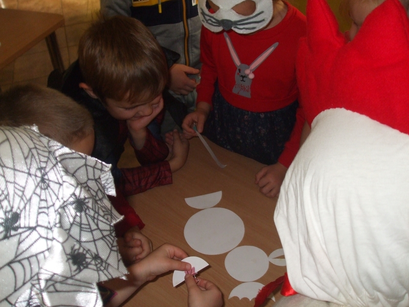 Maskotajā gājienā devāmies no mājas uz māju (zālē pie izvietotajiem galdiņiem) un piedalījāmies dažādās aktivitātēs, rotaļās, minējām mīklas. Noslēgumā cienājāmies ar gardumiem.
