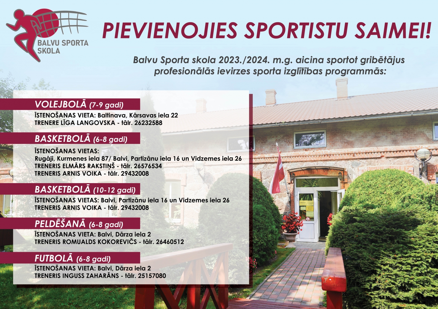 - Treneris: Inguss Zaharāns – tālr. 25157080.