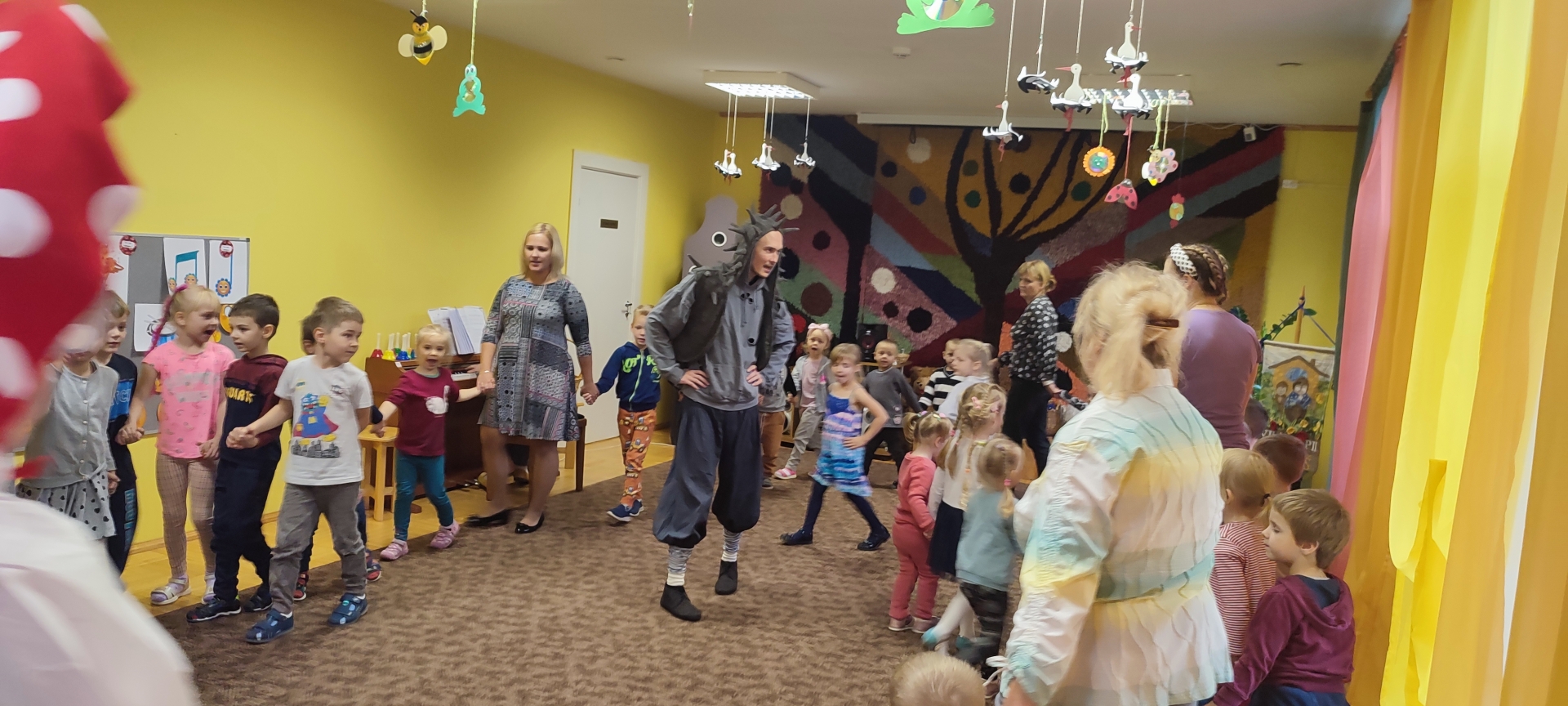 Mūsu „Namiņa” klēts 19.oktobrī pildījās labestības, prieka, dziesmu un deju graudiem, kurus sarūpēja iestādes bērni kopā ar mūzikas skolotāju Elitu un Viļakas kultūras nama tandēms – Ezis (Normunds) un Mušmire (Inese).