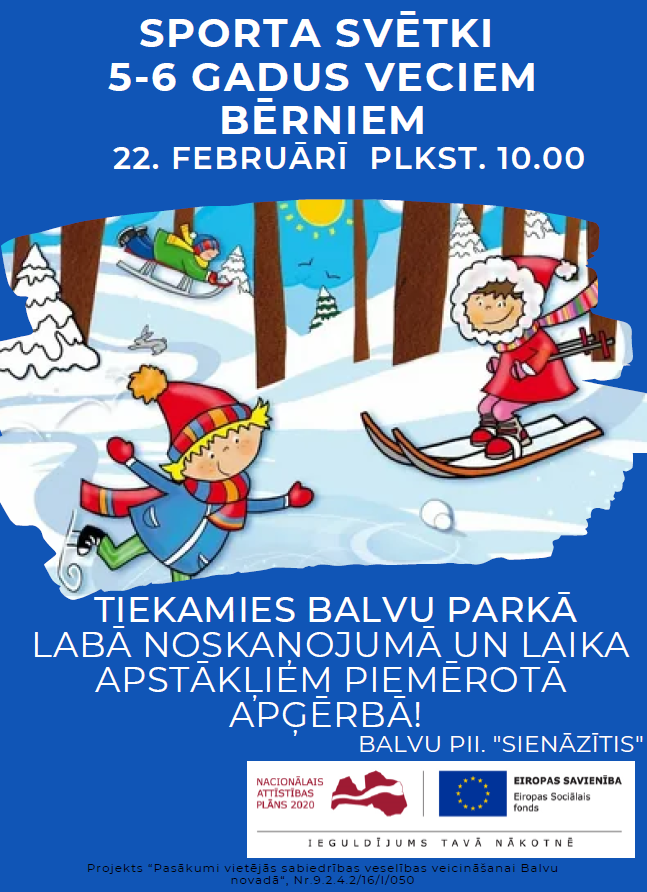 Īstenojot projekta “Pasākumi vietējās sabiedrības veselības veicināšanai Balvu novadā“, Nr.9.2.4.2/16/I/050 aktivitātes, Sporta svētkos tiek aicināti piedalīties Balvu novada izglītības iestāžu pirmsskolas vecuma bērni (5-7 gadi).