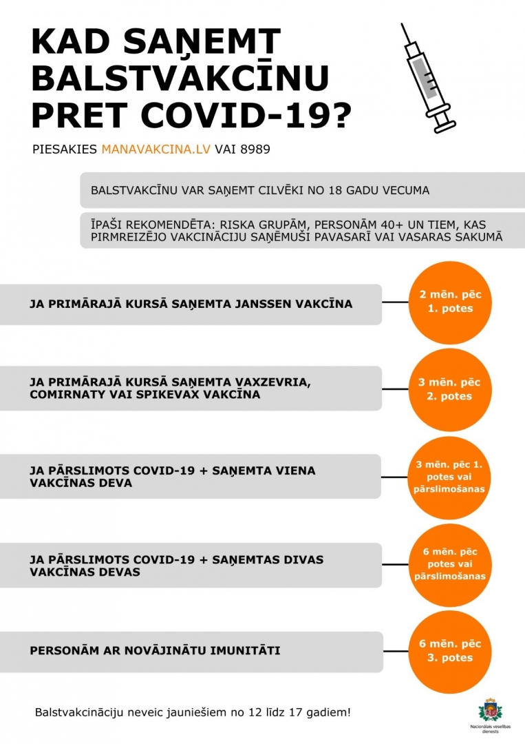 Tūkstošiem cilvēku jau ir saņēmuši balstvakcīnu, bet pārējiem pēc tās jādodas laikus, lai nerastos rindas, un visi to saņemtu laicīgi gan savas veselības dēļ, gan lai turpinātu saņemt pakalpojumus “zaļajā režīmā”.