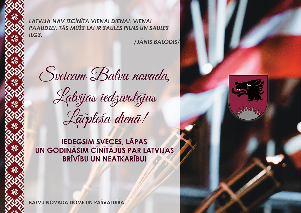 Sveicam Balvu novada, Latvijas iedzīvotājus Lāčplēša dienā!