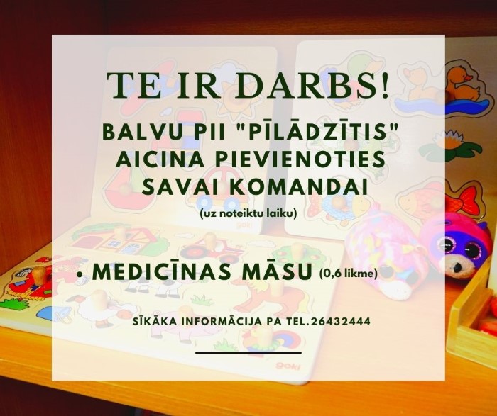 TE IR DARBS! BALVU PII "PĪLĀDZĪTIS" AICINA KOLEKTĪVĀ MEDICĪNAS MĀSU
