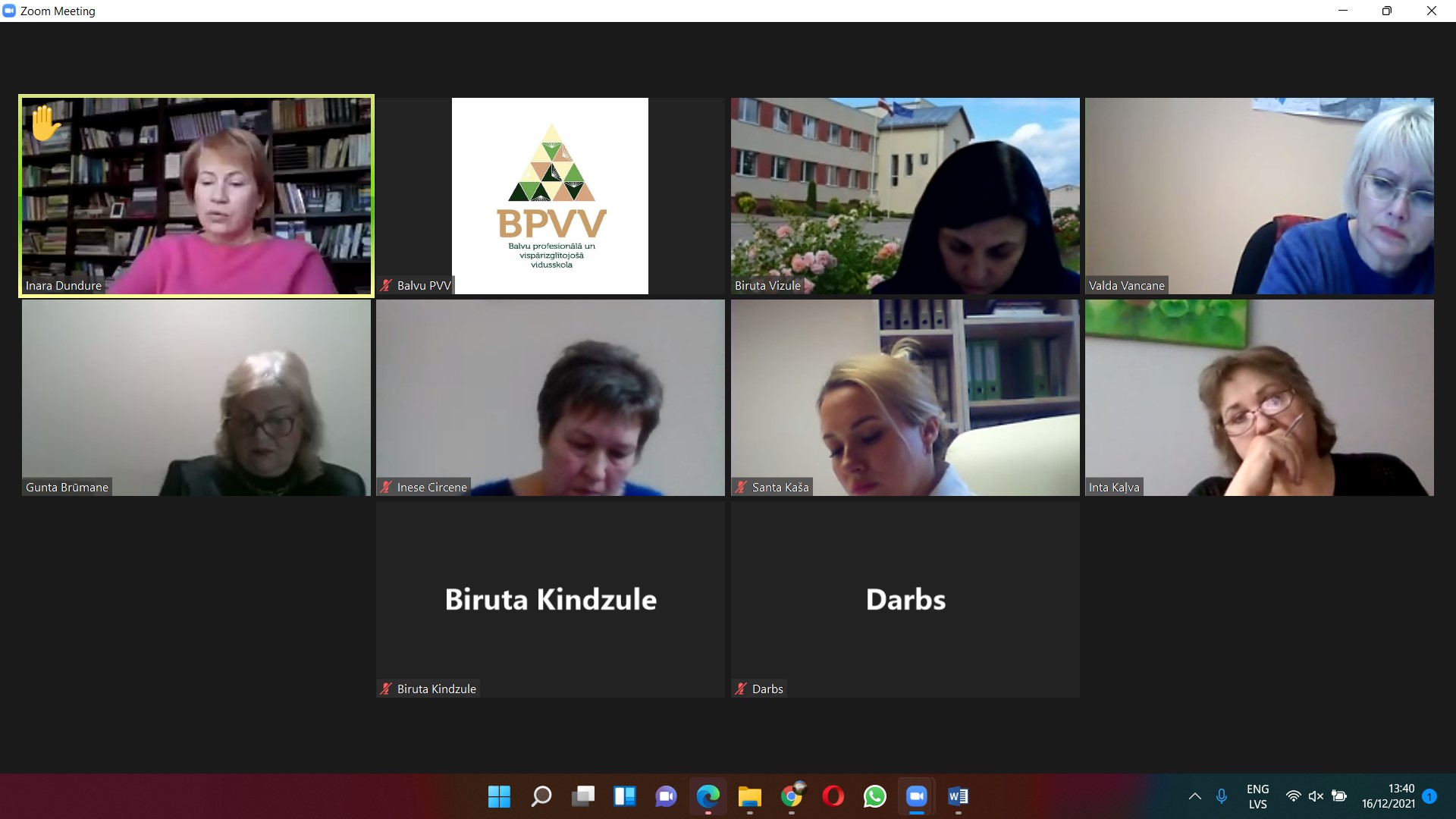 16.decembrī ZOOM platformā Balvu profesionālajā un vispārizglītojošajā vidusskolā notika Konventa sanāksme. Tajā dalību ņēma Ināra Dundure, Latvijas Pašvaldību savienības padomniece izglītības un kultūras jautājumos. Gunta Brūmane, SIA "Burdas salons" valdes priekšsēdētāja, nozares ekspertu padomes "Tekstilizstrādājumu, apģērbu, ādas un ādas izstrādājumu ražošana" darba devēju puses eksperte. Inta Kaļva, Balvu novada Izglītības, kultūras un sporta pārvaldes vadītāja. Inese Circene, Viļakas novada Izglītības, kultūras un sporta pārvaldes vadītāja. Valda Vancāne, Teritorijas plānotāja. Skolas direktore Biruta Vizule, direktores vietnieks profesionālās izglītības darbā Santa Kaša, Izglītības darba speciālists Biruta Kindzule, kura atbild par pieaugušo izglītību un mūžizglītību, IT speciālists Guntis Circens.