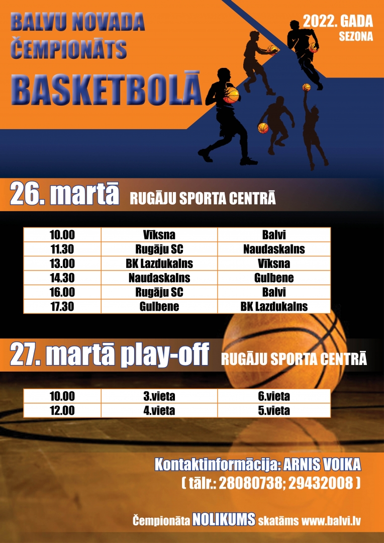 Ar mērķi popularizēt basketbola spēli un veselīgu dzīves veidu Balvu novadā, kā arī sekmēt iedzīvotāju vēlmi regulāri nodarboties ar sportiskām aktivitātēm, priecājamies paziņot, ka no 2022. gada 12. marta līdz 2022. gada 9. aprīlim, norisināsies spēles, lai noskaidrotu Balvu novada čempionāta basketbolā 2022. gada sezonas labākās komandas!