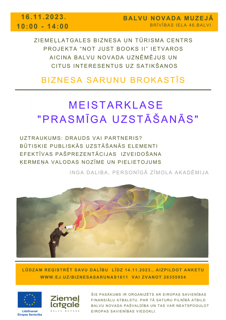 Ziemeļlatgales Biznesa un tūrisma centrs projekta “Not just books II” ietvaros aicina uz satikšanos Balvu novada uzņēmējus tradicionālajā pasākumā “Biznesa sarunu brokastis”, kas notiks 16. novembrī no plkst. 10:00 līdz 14:00 Balvu Novada muzeja konferenču zālē (Brīvības iela 46, Balvi).