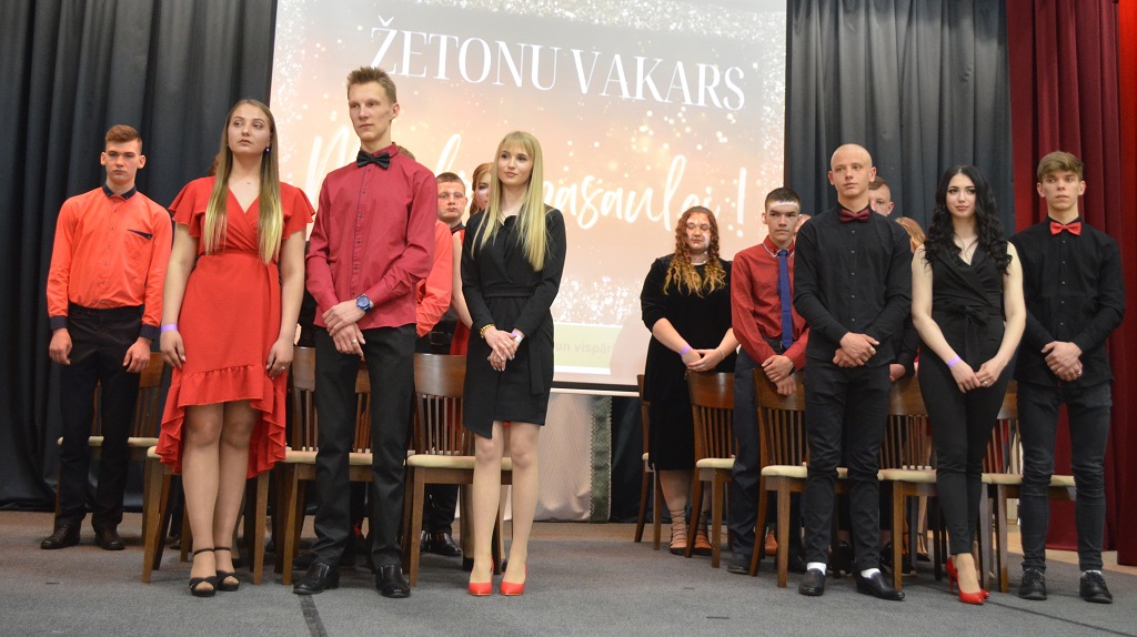 Siltā maija vakarā - 13.05.2022., kad ievu ziedi pilnā plaukumā, Balvu profesionālajā un vispārizglītojošajā vidusskolā (turpmāk BPVV), norisinājās Žetonu vakars “Mirdzi pasaulei!”. Žetonu vakarā piedalījās BPVV 12.klases izglītojamie (audzinātāja Inese Circene) un 4.kursu audzēkņi (audzinātājas Lienīte Līcīte un Benita Urtāne).