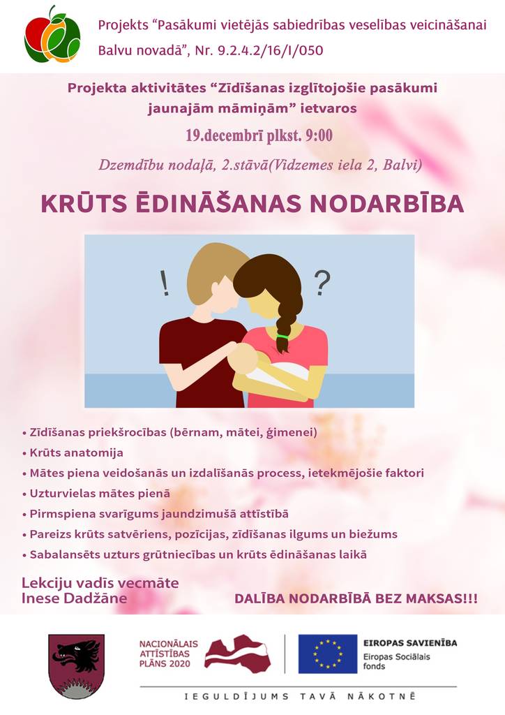 Zīdīšanas izglītojošais pasākums jaunajām māmiņām