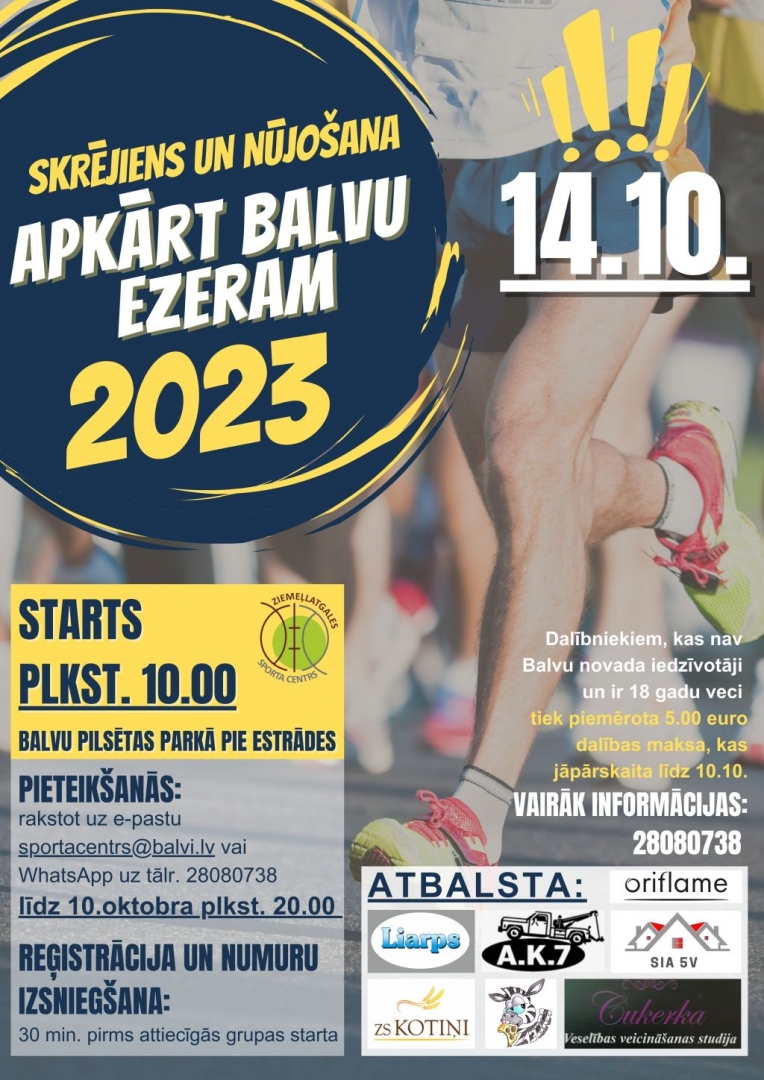 Skrējiens notiks 2023.gada 14.oktobrī Balvos, starts pilsētas parkā pie estrādes plkst. 10.00. Reģistrācija un numuru izsniegšana sacensību dienā 30 min. pirms attiecīgās grupas starta minētajā sacensību starta vietā.
