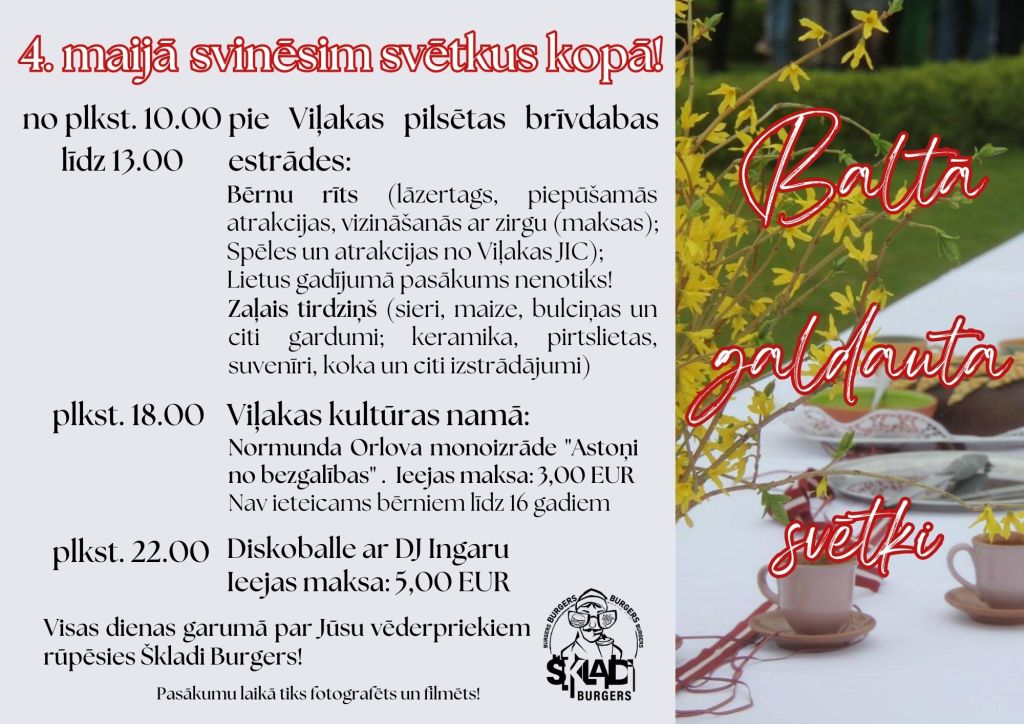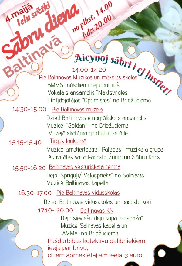 Latvijas Republikas Neatkarības atjaunošanas 34. gadadienu aicinām pavasarīgi patriotiskās noskaņās atzīmēt Balvu novadā. Kopīgi pavadīt laiku ģimenes vai draugu lokā iespējams ar lielisku svētku koncertu, tirdziņa apmeklējumu, sportiskām aktivitātēm vai vienkārši baudot dabas burvību.