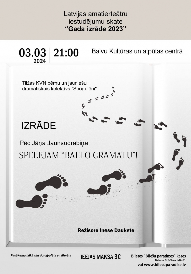 2024. gada 2. un 3.martā Balvu Kultūras un atpūtas centrā būs iespējams vērot Latvijas amatierteātru iestudējumu skates "Gada izrāde 2023" izrādes: