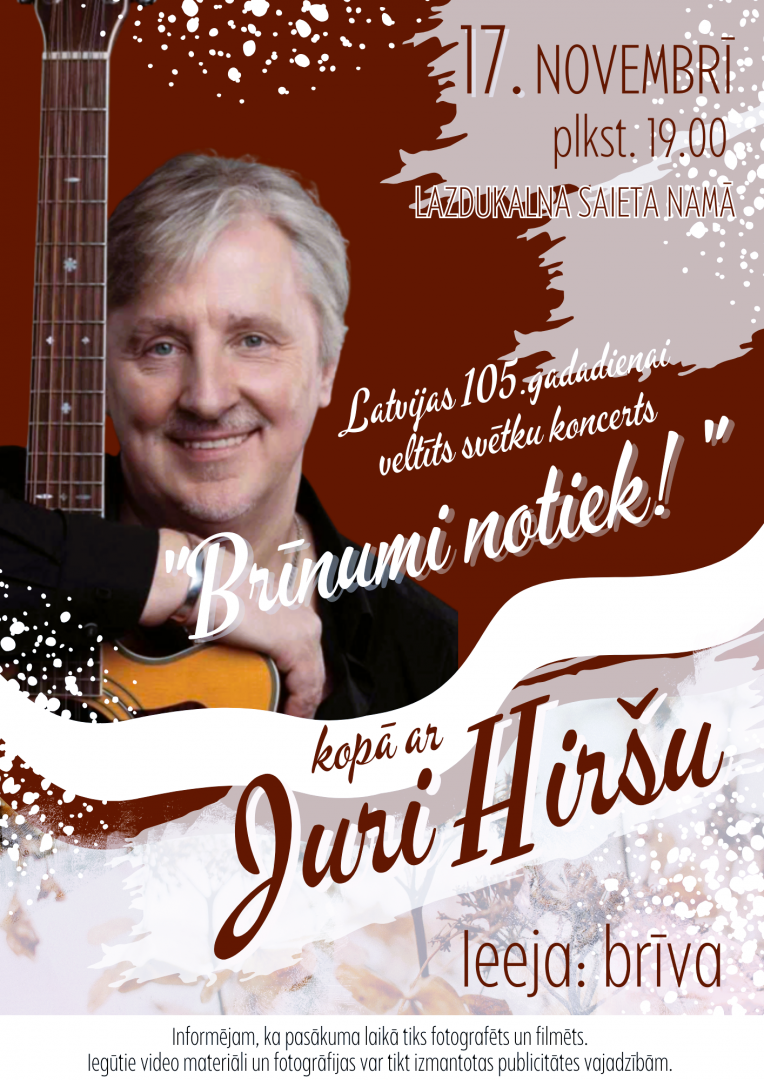 - Plkst. 19.00 Latvijas 105.gadadienai veltīts svētku koncerts kopā ar Juri Hiršu (ieeja: brīva).