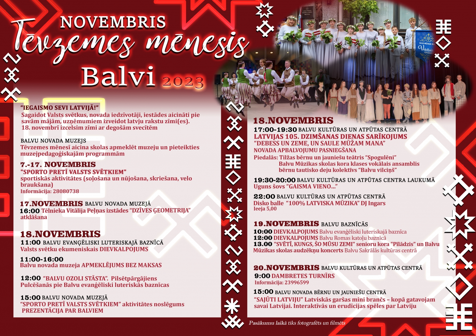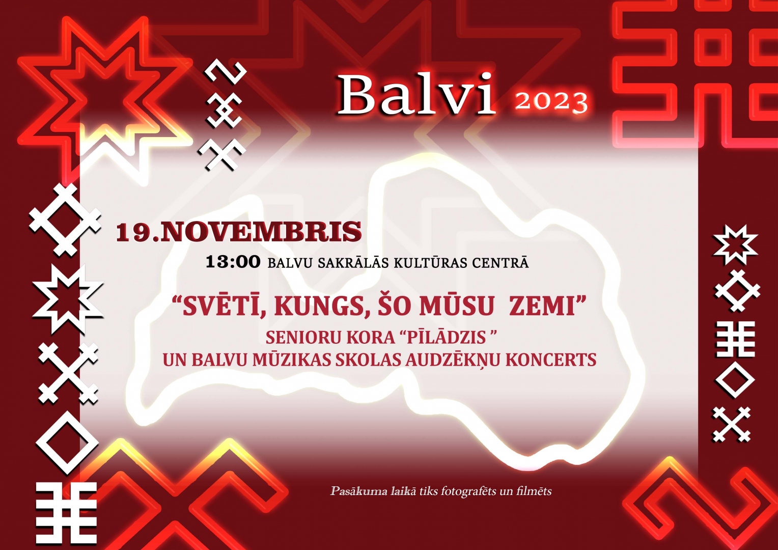 - Plkst. 13.00 Senioru kora “Pīlādzis” un Balvu Mūzikas skolas audzēkņu koncerts “Svētī, Kungs, šo mūsu zemi” Balvu Sakrālajā kultūras centrā.
