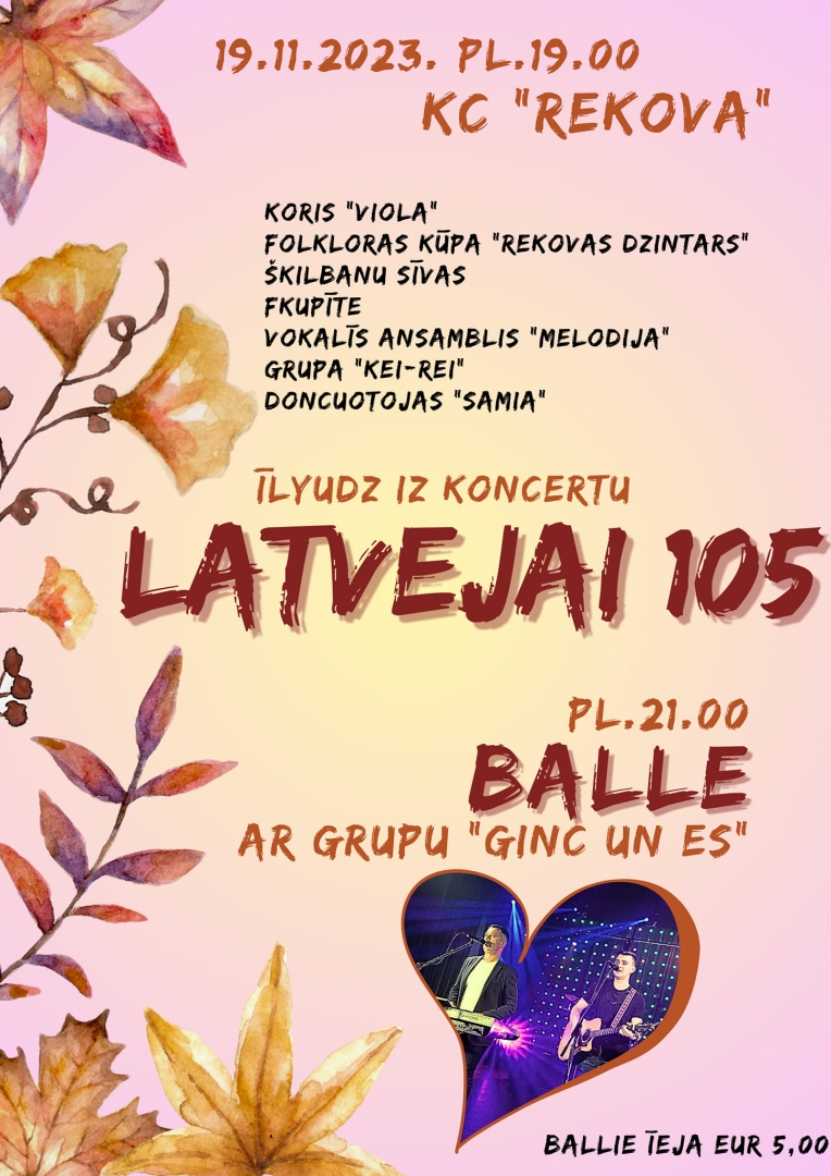 - Plkst. 21.00 balle kopā ar grupu “Ginc & es” (ieeja: 5,00 euro).