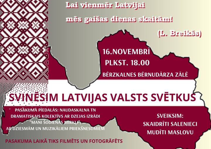 - Latvijas Republikas proklamēšanas gadadienai veltīts pasākums.