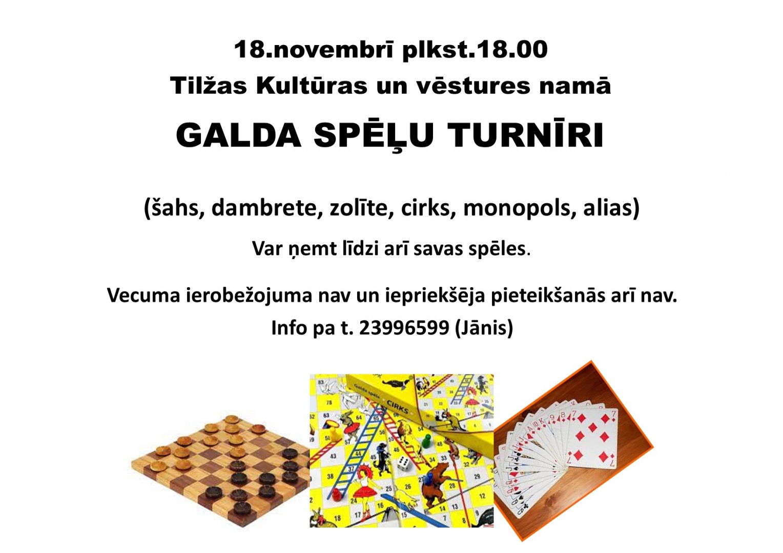 - Dambretes turnīrs (sīkākai informācijai T. 23996599).